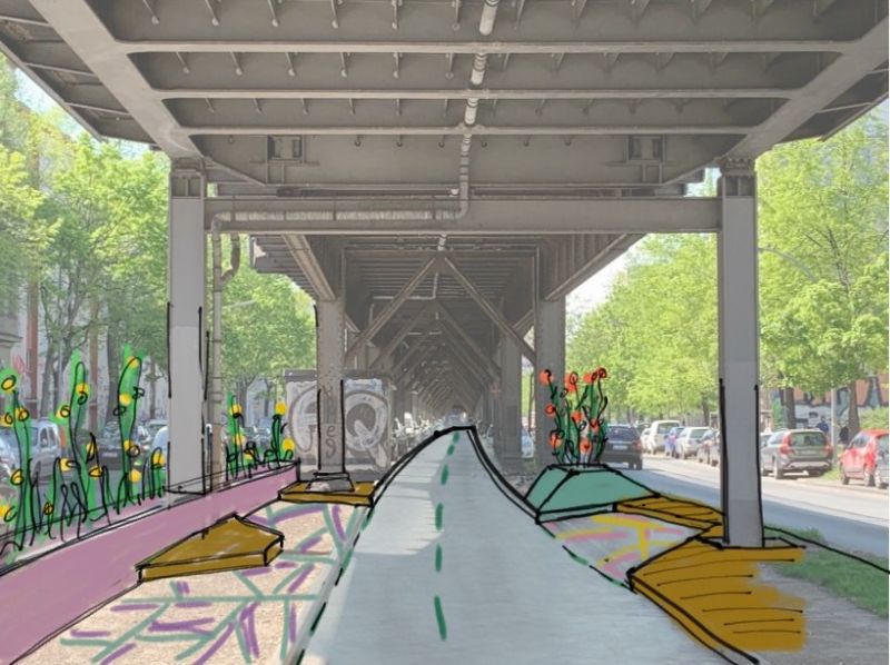 Das Konzept der Radbahn verfolgt den Ansatz einer stadträumlichen Entwicklung mit Fahrradinfrastruktur unter und entlang des weitestgehend vergessenen Raumes des denkmalgeschützten Hochbahnviadukts der Berliner U-Bahn-Linie 1.