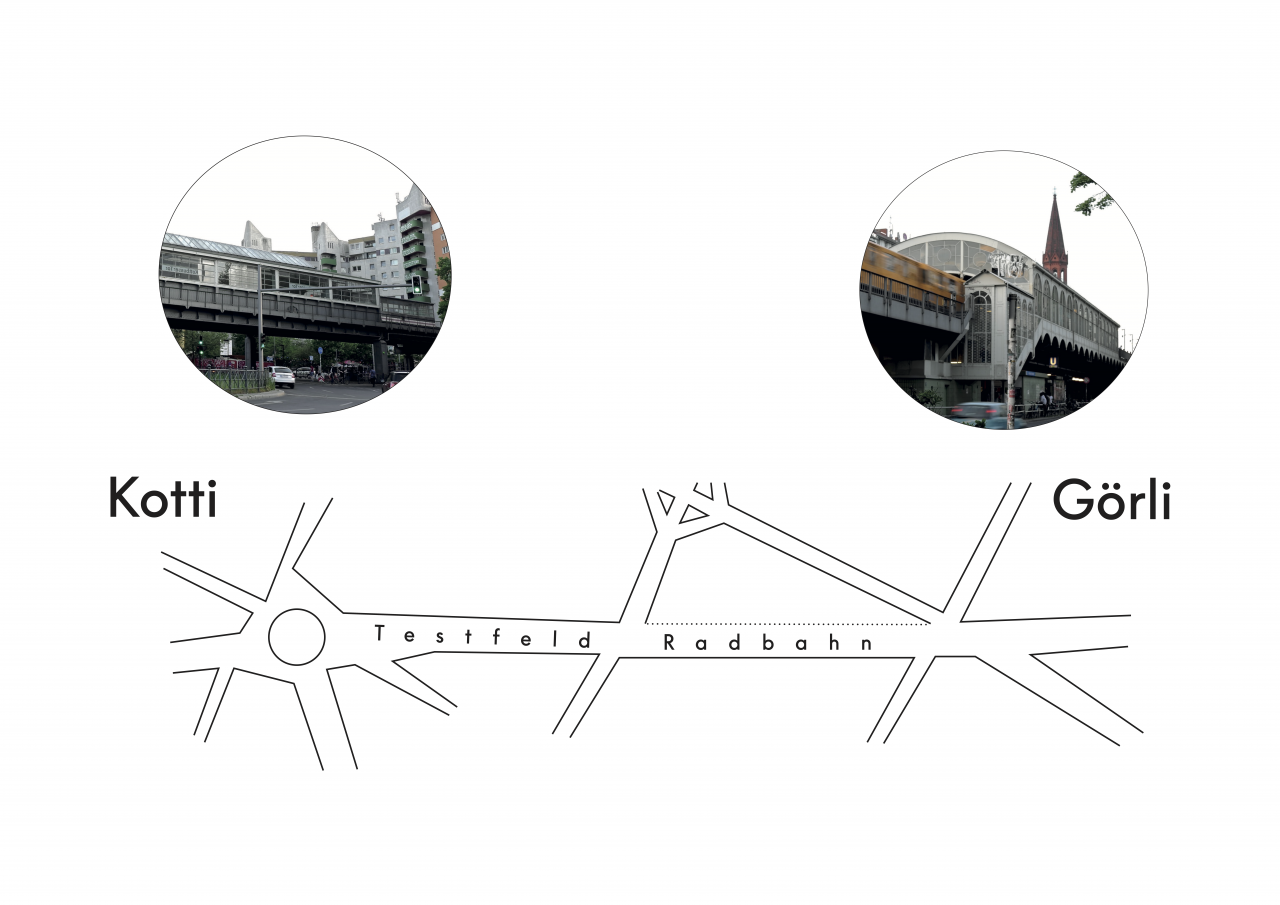 Das Konzept der Radbahn verfolgt den Ansatz einer stadträumliche Entwicklung mit Fahrradinfrastruktur unter und entlang des weitestgehend vergessenen Raumes des denkmalgeschützten Hochbahnviadukts der Berliner U-Bahn-Linie 1.