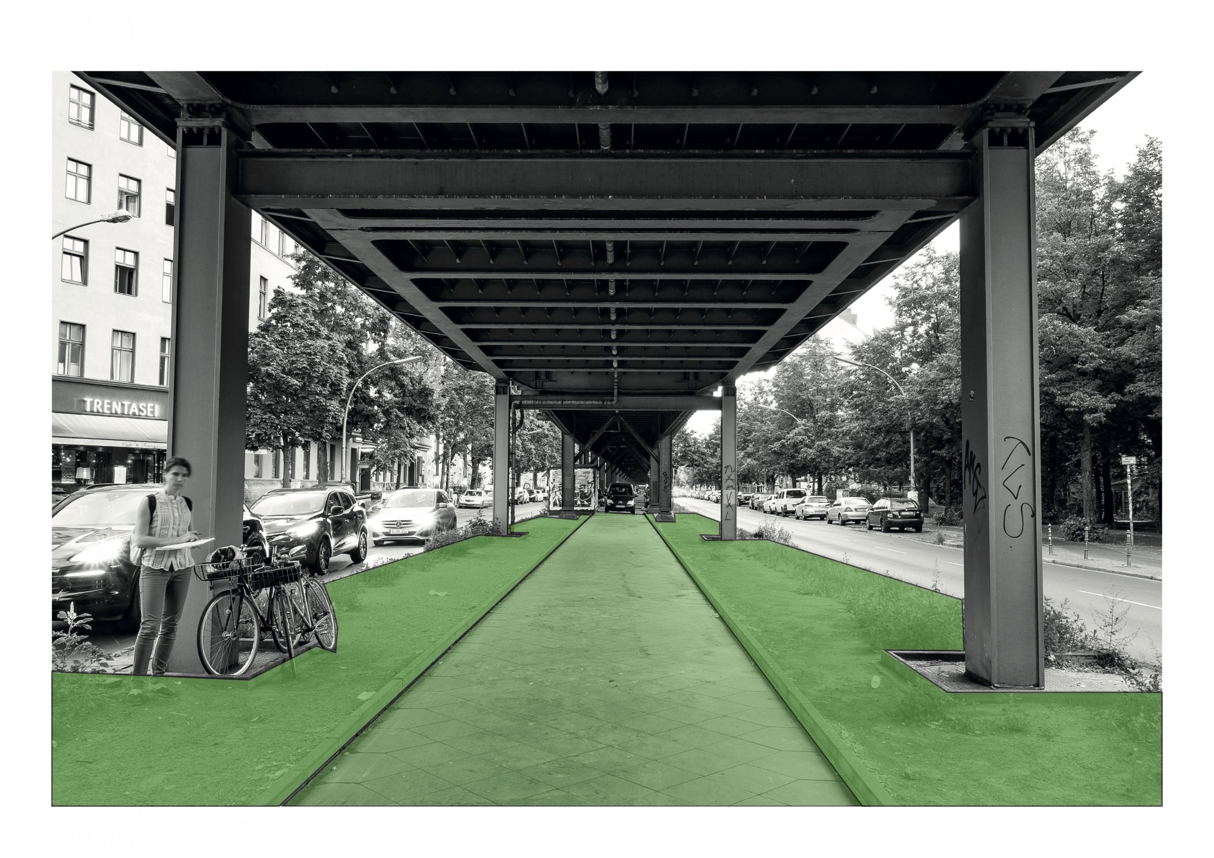 How must the space under the viaduct be designed so that it allows opportunities for procedural changes and, if necessary, different groups of users? If possible, and in coordination with the district of Friedrichshain-Kreuzberg, we will therefore also use the test phase to try out different spatial and traffic scenarios.